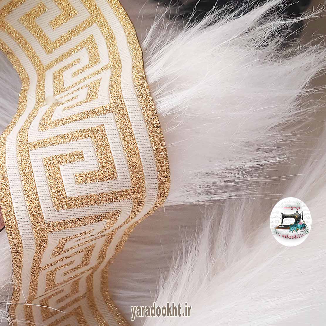 شال مبل خز پرزبلند نوار ورساچ طلایی به همراه کاورکوسن.